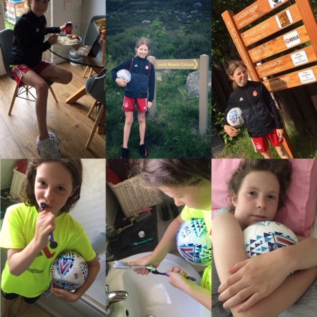The girls had great fun doing the challenge and were very creative in the ways they kept the ball with them for 24hrs! Some of the footballs made it along on a shopping trip, an 8 mile kick about around Loch Muick, a trek around Forvie nature reserve, balanced during breakfast, lunch and supper and even some gymnastics all whilst keeping hold of the ball!