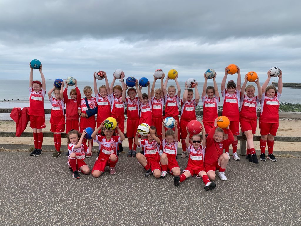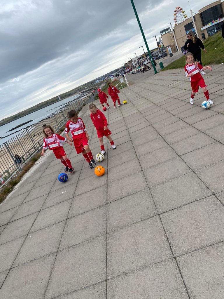 The U7 & U9 girls raised funds with a sponsored dribble on Sunday 18th July from Fittie to Bridge of Don and back again which is a total of 10k. The girls had a 10 mins break at the half way point and 5 mins break at 3/4 point on way back for a ice cream much to the delight of the girls and coaches.